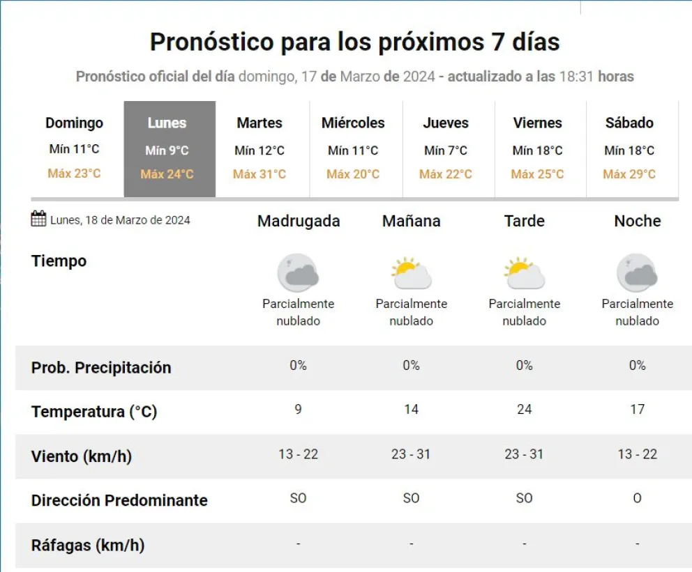 El verano no se quiere ir y esta semana volvemos a pasar los 30°, enterate cuándo vuelve el calor Regionales por rocanoticias - 18/03/20240 A pocos días de la llegada del otoño, comienza este miércoles, el verano se resiste a retirarse y durante la semana habrá que guardar las camperas, para disfrutar de, quizás, uno de los últimos días de calor.Así lo marcó el Servicio Meteorológico Nacional desde su página oficial, en la que pronostican para hoy una temperatura mínima de 9°, una máxima de 24°, cielo parcialmente nublado, viento del sudoeste hasta 31 km/h, rotando hacia la noche al oeste y bajando su velocidad.Para mañana anunciaron una mínima de 12 y un regreso del calor para el Alto Valle, con una máxima de 31°. El martes además será una jornada ventosa, sobre todo durante la tarde y la noche. Se esperan vientos del oeste de hasta 50 km/h y ráfagas de 87 km/h para la tarde y hasta 78km/h, para la noche.Para el miércoles la temperatura baja de manera considerable. La mínima pronosticada estará en los 11° y la máxima en 20°. El viento seguirá presente con ráfagas desde los 78 hasta 87 km/h.Para el jueves sigue en descenso la temperatura y por fortuna el viento se convierte en una leve briza. Recién el fin de semana vuelve a subir algunos grados la temperatura, aunque con un sábado cálido y no caluroso.RocaNoticias.com en Redes Sociales con información al instante! Facebook.com/RocaNoticiasOK Twitter.com/RocaNoticiasOK Youtube.com/@RocaNoticias Instagram.com/RocaNoticiasOK Telegram.me/RocaNoticias TikTok.com/@RocaNoticiasCompartir esta noticia:Tweet Haz clic para compartir en WhatsApp (Se abre en una ventana nueva) WhatsApp Haz clic para compartir en Telegram (Se abre en una ventana nueva) Telegram Haz clic para compartir en Reddit (Se abre en una ventana nueva) Reddit Haz clic para imprimir (Se abre en una ventana nueva) Imprimir Relacionado...