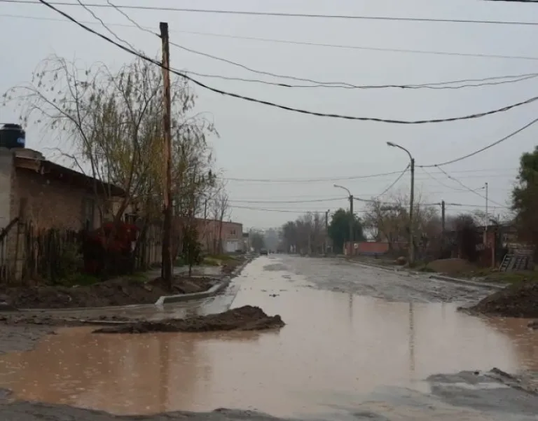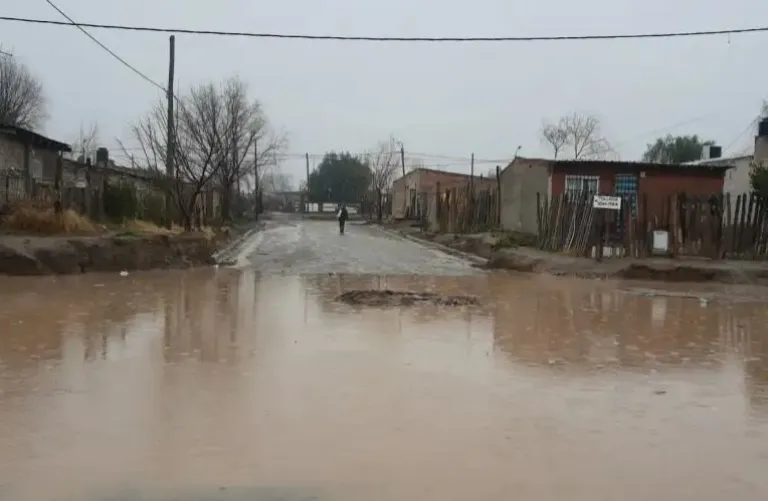 Las lluvias intensas inundaron varios sectores de la ciudad donde los vecinos quedaron rodeados de agua. En la zona norte las calles de tierra de los barrios Noroeste, Nuevo y Quinta 25 barrio Fiske Menuco a metros del cementerio municipal, Alta Barda, Carlos Soria y Chacra Monte.