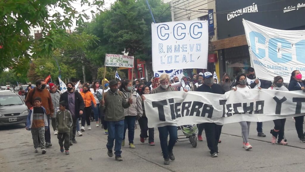 Marcharon a Desarrollo Social de Provincia bajo el lema Techo, tierra y trabajo Regionales Rio Negro Roca Sociedad por rocanoticias - 17/03/20210Una columna de la Corriente Clasista y Combativa (CCC) de aproximadamente 200 personas se movilizó esta mañana por las calles céntricas de Roca en el marco de una jornada nacional por la sanción del proyecto de Ley de Techo, tierra y trabajo, presentado en el Congreso Nacional.En horas del mediodía se realizará una olla popular en la estación, luego de haber pasado por la sede de Desarrollo Social de Río Negro donde se elevó un petitorio.Fuente: Prensa CCCEntre las reivindicaciones, señalaron el pedido de mayor presupuesto para la emergencia social para el aumento del Salario Mínimo, inscripción a las tarjetas Rio Negro presente y Nutre; y alimentos para comedores y merenderos. Además, solicitaron tierras para producir, vivir y ayudas habitacionales para quienes poseen terrenos.«Seguimos luchando porque la crisis no la pague el pueblo», aseguraron y en ese sentido, reclamaron por la investigación y suspensión del pago de la deuda externa, para distinguir la legitima de la ilegitima y fraudulenta.Sobre la emergencia sanitaria, pidieron garantizar la vacunación contra el coronavirus para todos, priorizando a las personas más expuestas y mas vulnerables.Hubo movilizaciones simultáneas en varias localidades de la provincia por la misma jornada como Viedma, Bariloche, Cipolletti, Catriel, entre otras.(Gentileza lacomuna)Estamos en redes sociales con información al instante: Facebook.com/RocaNoticiasOK Twitter.com/RocaNoticiasOK Nuestro Canal en YouTube Instagram.com/RocaNoticiasOK Telegram.me/RocaNoticiasCompartir esta noticia:Tweet Haz clic para compartir en WhatsApp (Se abre en una ventana nueva) WhatsApp Haz clic para compartir en Telegram (Se abre en una ventana nueva) Telegram Haz clic para compartir en Reddit (Se abre en una ventana nueva) Reddit Haz clic para imprimir (Se abre en una ventana nueva) Imprimir Relacionado...