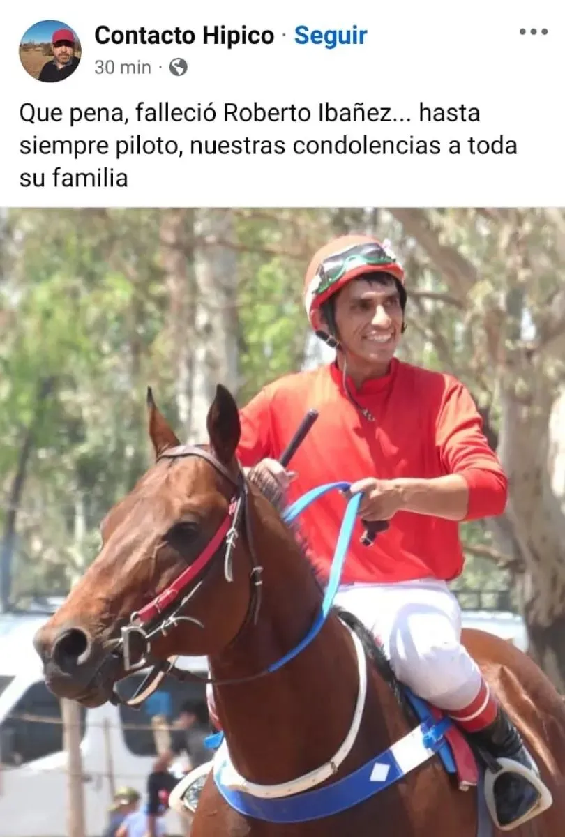 Quién era Roberto Ibáñez, el jockey que murió en plena carrera de caballos en Regina Regionales Roca por rocanoticias - 26/11/20240 El mundo del turf está de luto tras la muerte de Roberto Ibáñez, un jockey que supo ganarse un lugar destacado en las pistas de la región. Con solo 34 años, falleció este lunes luego de un grave accidente ocurrido el fin de semana en la pista de carreras de Villa Regina. El domingo, durante la cuarta carrera, cerca de las 10 de la mañana, el caballo que montaba Ibáñez sufrió un colapso repentino mientras competía. En la caída, el animal aplastó al jockey, quien quedó inconsciente con lesiones severas en la cabeza. Fue trasladado de urgencia a un hospital López Lima de General Roca, pero a pesar de los esfuerzos médicos no lograron salvarle la vida. Roberto nació el 22 de julio de 1992 en la ciudad Cipolletti, Ibáñez pasó gran parte de su vida en Fernández Oro, donde descubrió su pasión por los caballos. Sus primeros pasos en el turf fueron como cuidador, pero rápidamente se destacó como jinete por su habilidad. Su trayectoria estuvo marcada por numerosas victorias, siendo la más recordada su triunfo en el Gran Premio Carlos Pellegrini en 2019.El legado de Roberto Ibáñez trasciende las pistas. Sus amigos, colegas y amantes del deporte turf lo recordaron a través de las redes sociales con miles de mensajes como un joven apasionado y muy comprometido con lo que hacía.El accidente que terminó con su vida ha generado conmoción en la comunidad turfística. La Fiscalía de Villa Regina abrió una investigación para determinar las causas del colapso del animal, incluyendo la posibilidad de un infarto. RocaNoticias.com en Redes Sociales con información al instante! Facebook.com/RocaNoticiasOK Twitter.com/RocaNoticiasOK Youtube.com/@RocaNoticias Instagram.com/RocaNoticiasOK Telegram.me/RocaNoticias TikTok.com/@RocaNoticiasGentileza anrCompartir esta noticia:Tweet Haz clic para compartir en WhatsApp (Se abre en una ventana nueva) WhatsApp Haz clic para compartir en Telegram (Se abre en una ventana nueva) Telegram Haz clic para compartir en Reddit (Se abre en una ventana nueva) Reddit Haz clic para imprimir (Se abre en una ventana nueva) Imprimir Relacionado...