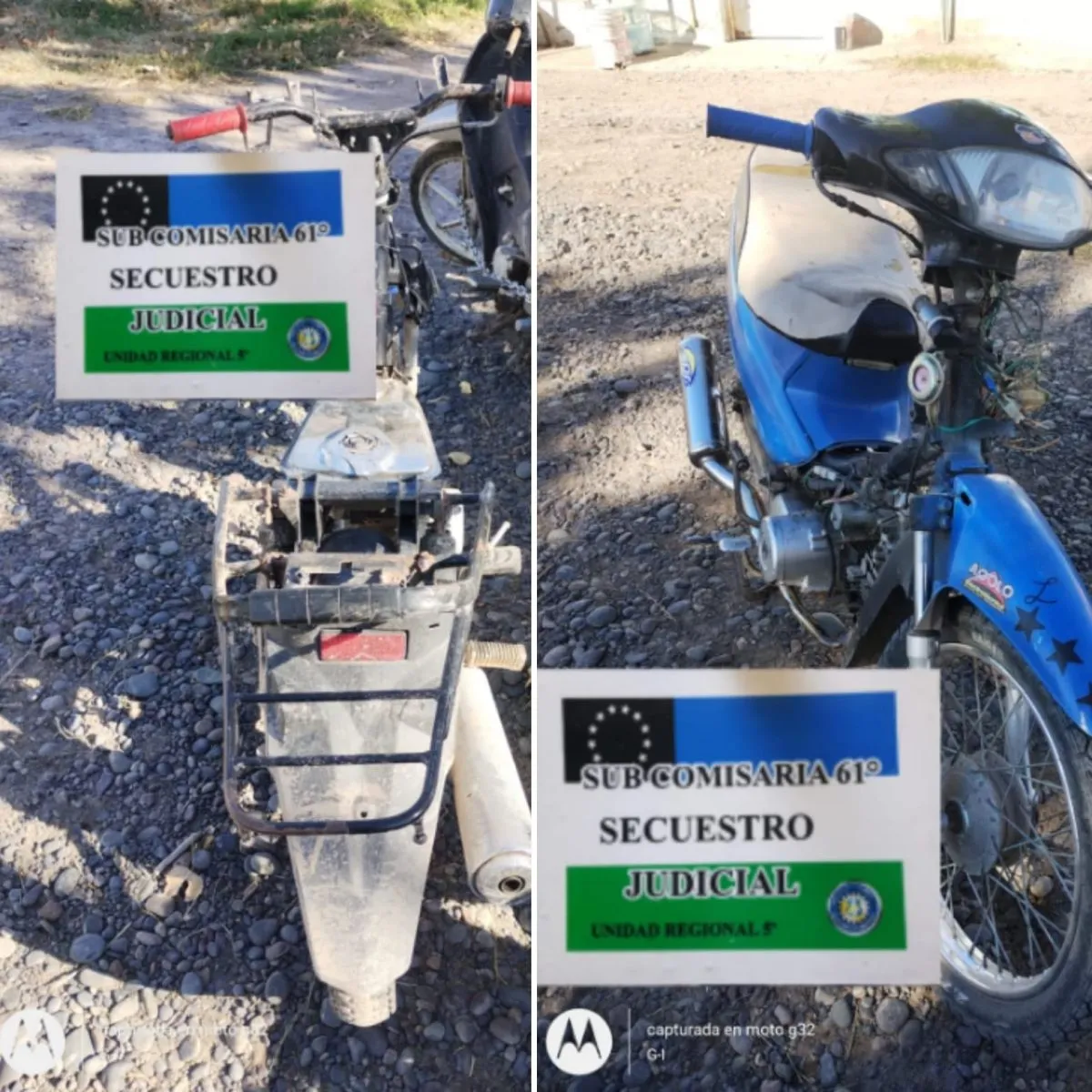 Secuestran motos en el Alto Valle por no contar con las medidas de seguridad Regionales por rocanoticias - 10/05/20240 Como parte de un operativo vehicular, entre la Policía de Río Negro e inspectores municipales, se retiraron de circulación dos motocicletas por no cumplir con los requisitos de seguridad para poder transitar y por incumplir con las reglas de tránsito.Las tareas de control estuvieron a cargo del personal de la Subcomisaría 61° con empleados del área de Tránsito de la Municipalidad de Barda del Medio.Los operativos se desarrollaron en horarios de mañana, durante la presente semana. Tras examinar a varios vehículos, los empleados policiales y municipales, por orden del Juzgado de Faltas de la mencionada localidad, procedieron al secuestró de dos motos que carecían totalmente de las medidas de seguridad requeridas.Como los rodados no están vinculados a hechos judiciales, ambos quedaron bajo la responsabilidad del municipio de Barda.RocaNoticias.com en Redes Sociales con información al instante! Facebook.com/RocaNoticiasOK Twitter.com/RocaNoticiasOK Youtube.com/@RocaNoticias Instagram.com/RocaNoticiasOK Telegram.me/RocaNoticias TikTok.com/@RocaNoticiasCompartir esta noticia:Tweet Haz clic para compartir en WhatsApp (Se abre en una ventana nueva) WhatsApp Haz clic para compartir en Telegram (Se abre en una ventana nueva) Telegram Haz clic para compartir en Reddit (Se abre en una ventana nueva) Reddit Haz clic para imprimir (Se abre en una ventana nueva) Imprimir Relacionado...